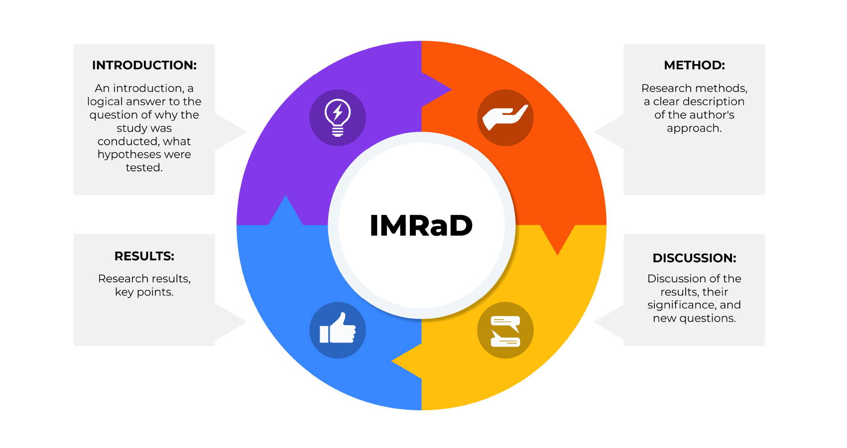 IMRAD (or IMRaD) is a commonly accepted structure for scientific articles based on empirical research. The name comes from the first letters of the four main sections: